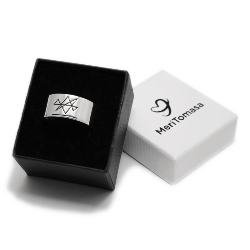 Anell Estrella de Midas en plata de llei, amb el gravat enfosquit, símbol Reiki de l'abundància. Disseny exclusiu i elaboració artesanal.