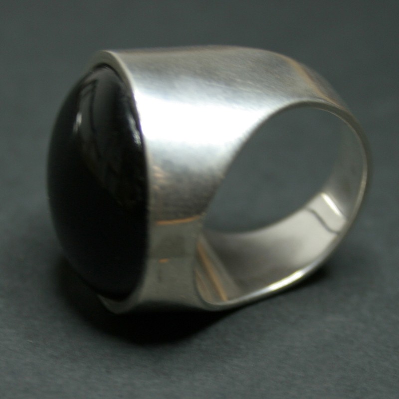 Anell en forma de segell rodó amb ònix. Forrat per l'interior (és buit).
