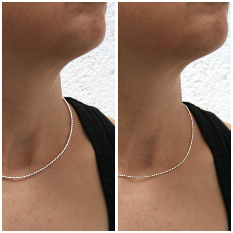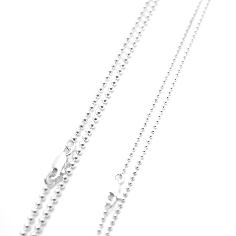 Aquesta és una cadena de boletes amb tanca de mosquetó. La tinc disponible en dos gruixos, així com en diferents longituds: 40, 45, 50 o 60 cm.