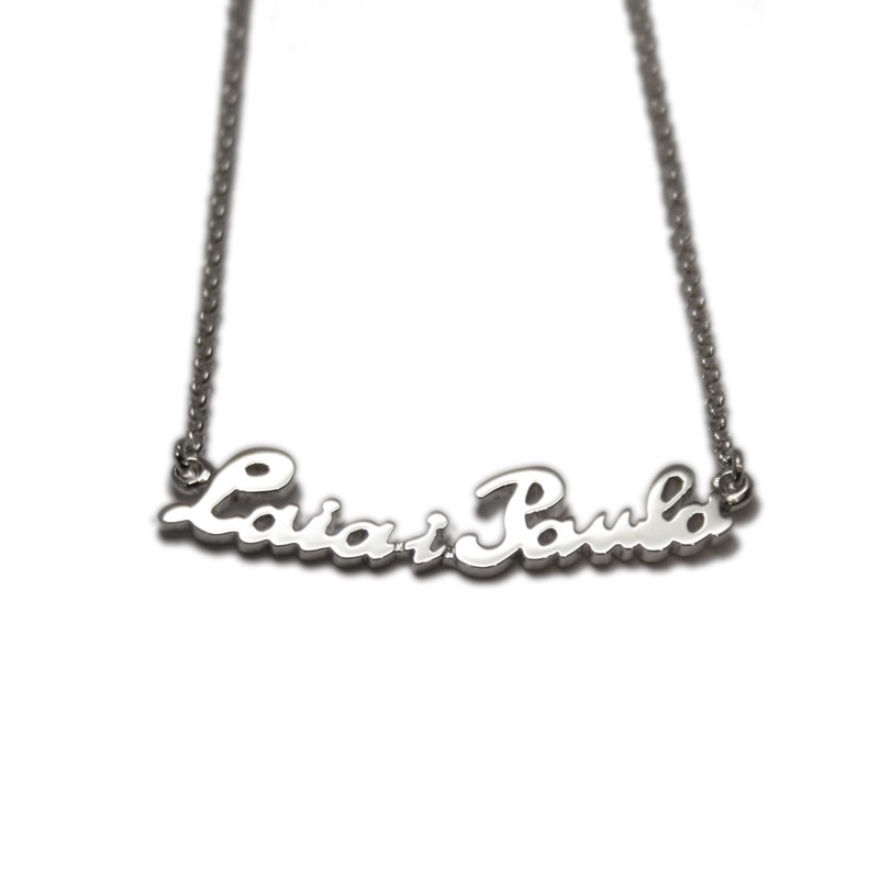 Els collarets amb nom estan de moda. Hi ha moltes joieries on trobaràs tots els noms estandarditzats i seriats. Jo no disposo d'aquest mostrari perquè el meu valor afegit és crear-los a mida de cada client. Pots triar la tipografia, la mida, el gruix, l'acabat, el tipus i mida de cadena,... I si vols fins hi tot pots ser tu qui em dibuixi les lletres! Així surten collarets realment exclusius :- )
