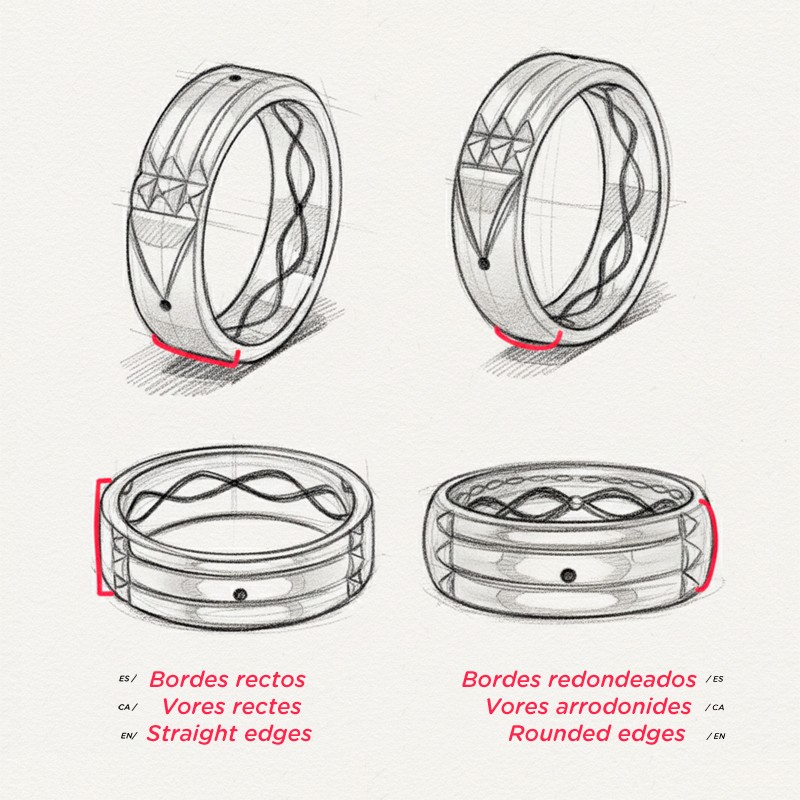 The various Atlantean ring models from The MeriTomasa's Treasures Factory share the same design, based on the laws of sacred geometry and the golden ratio. The only thing that changes is the precious metal or metals with which they are modeled.