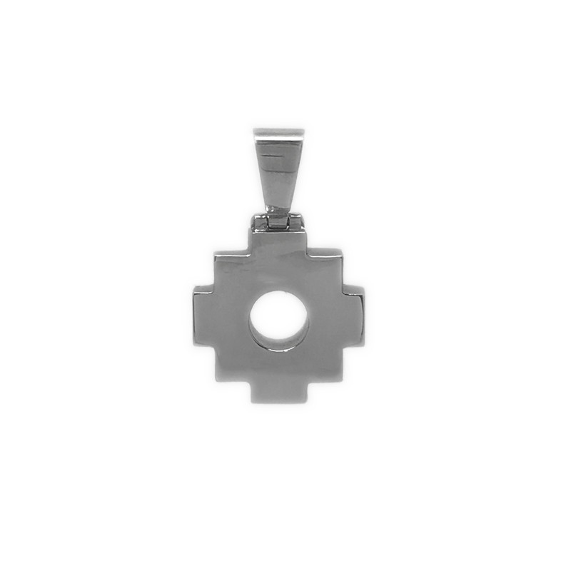 Chakana in 18K white gold, faithful to its original sacred geometry, in the form of a pendant.