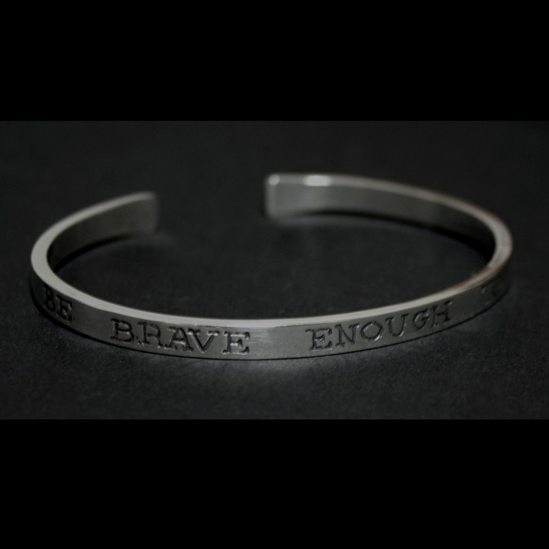 Rigid bracelets with handmade inscription (imitating courier typography).