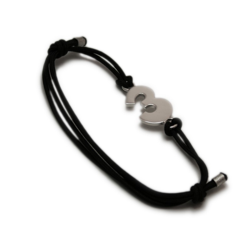 Personalized sterling silver bracelet in the shape of number 3, matching earrings and a pendant also personalized in the shape of number 3.