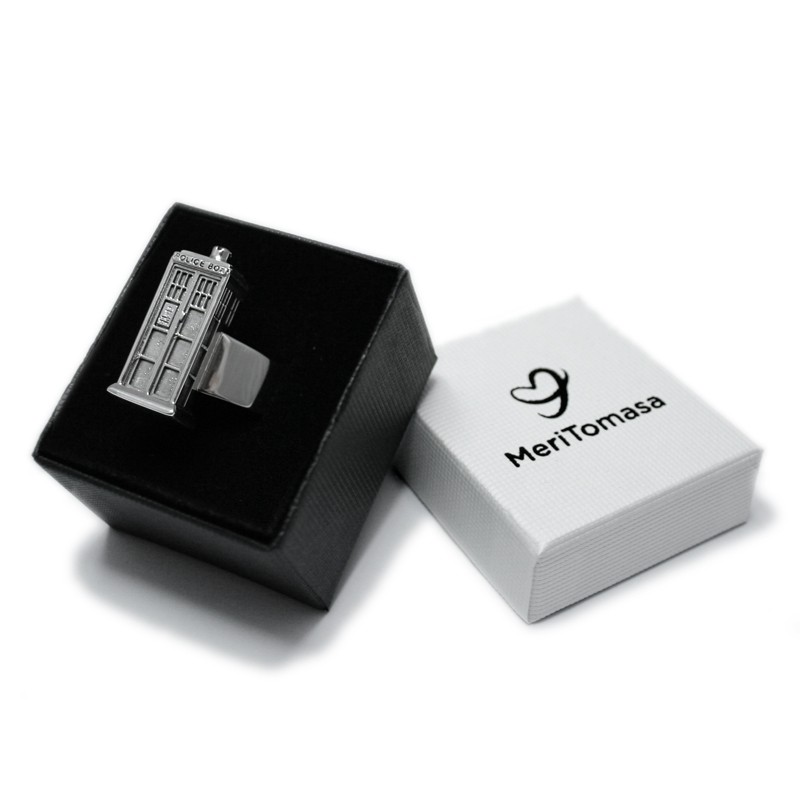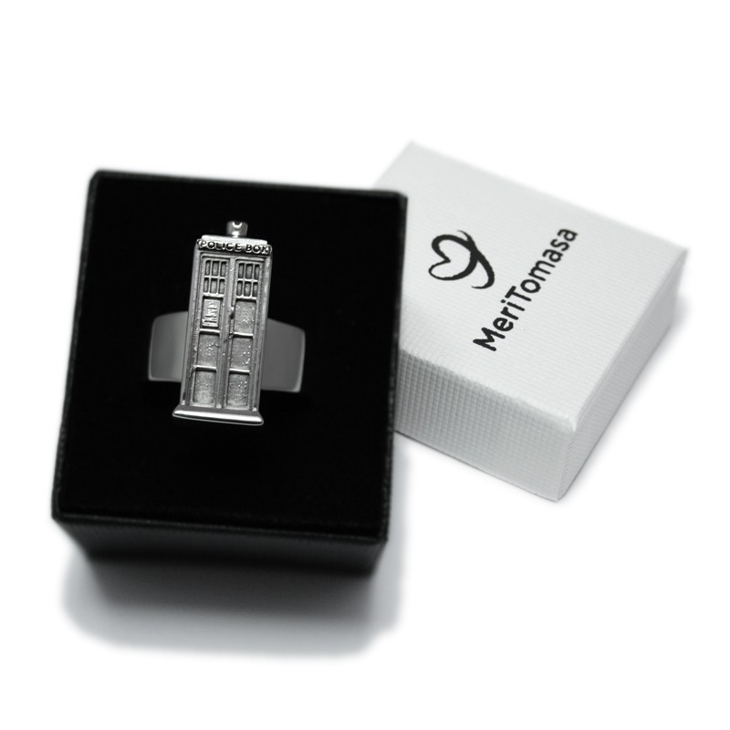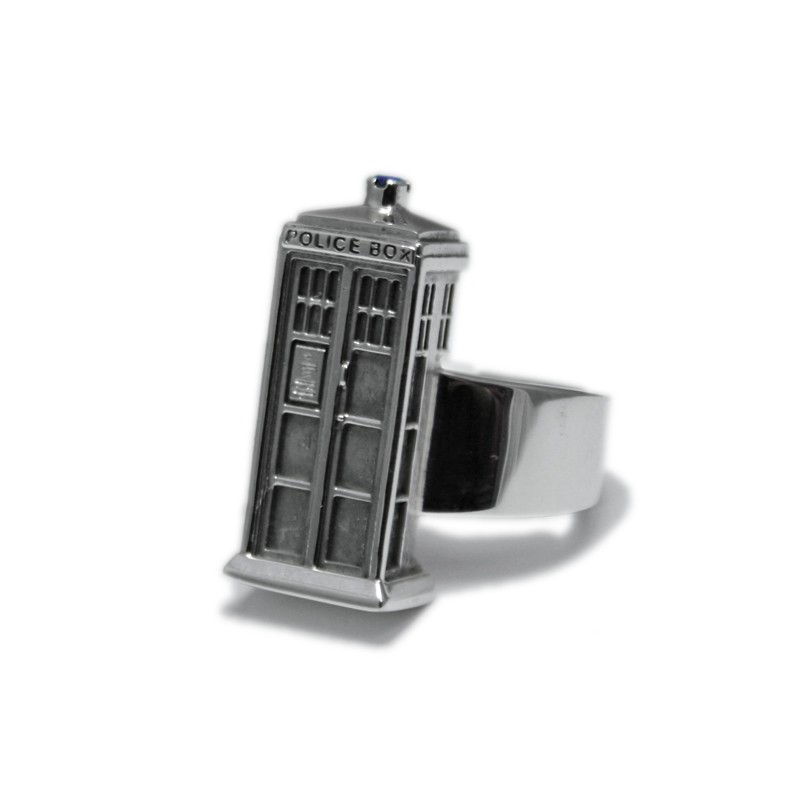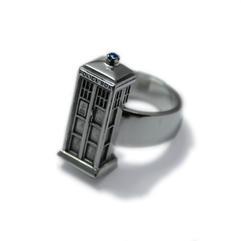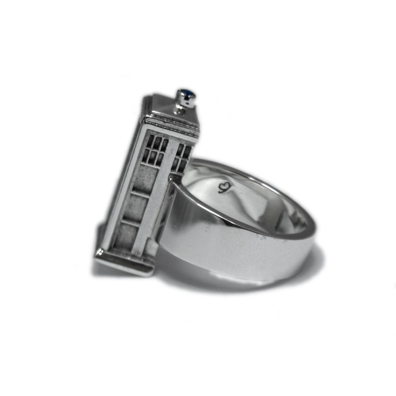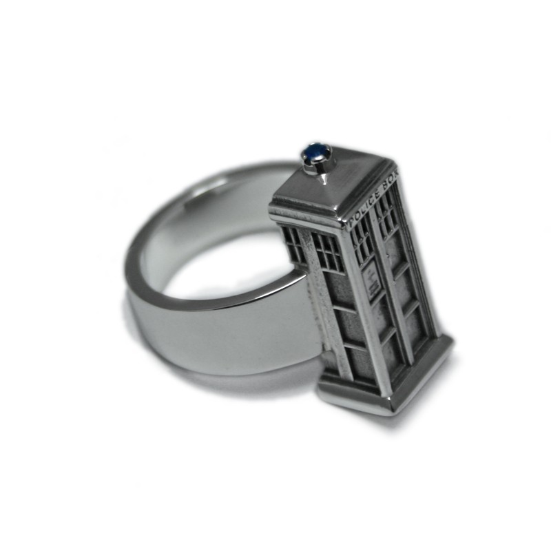 Ring shaped like TARDIS, the spaceship and time machine from the English science fiction series Doctor Who. All the details in the smallest dimensions, including a blue zirconia that acts as a mermaid.