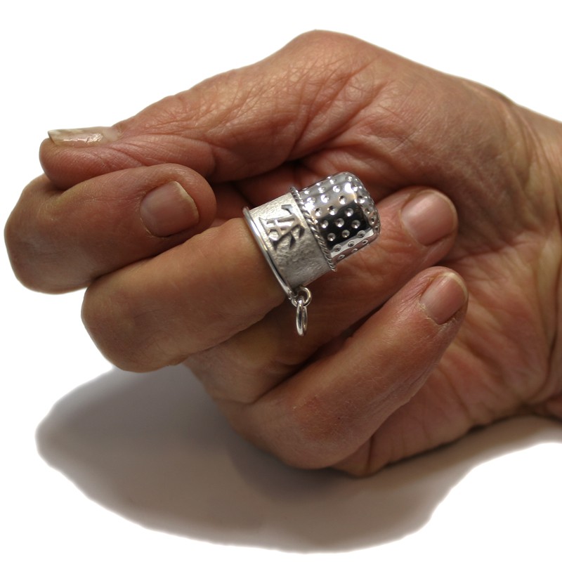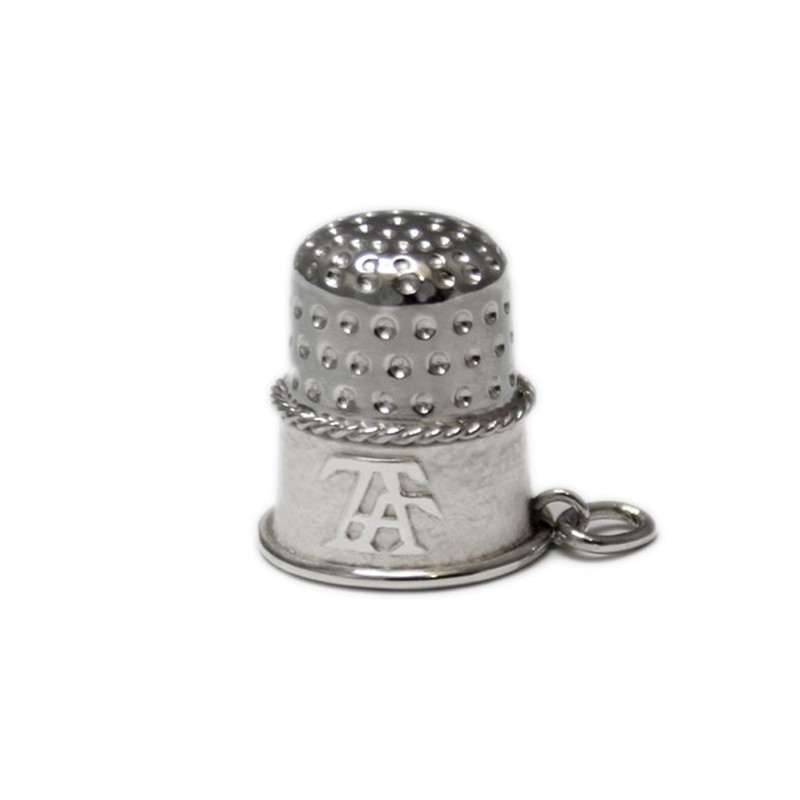 Personalized thimble for mother and daughter, Adelina and Ana Belén. It is designed to be worn as a necklace too.