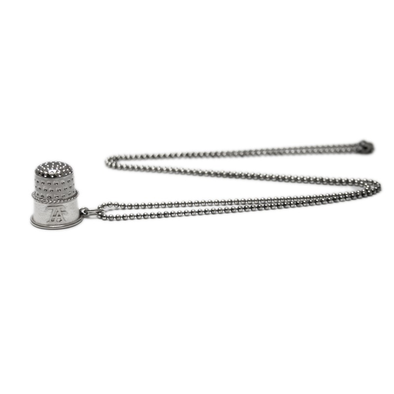 Thimble with a polished finish less the lower area that is whiter and more rustic. A little darkened chain of 70 cm.