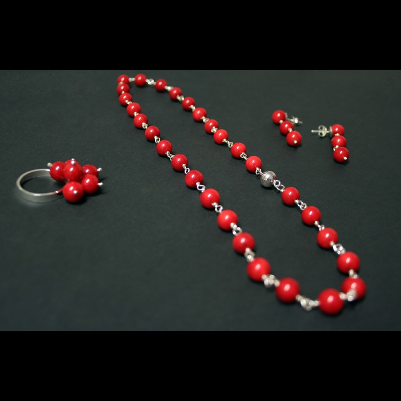 Because accessories should never be less! The carnelian beads linked together form the necklace through silver rings (magnet clasp). Earrings and ring with movement.