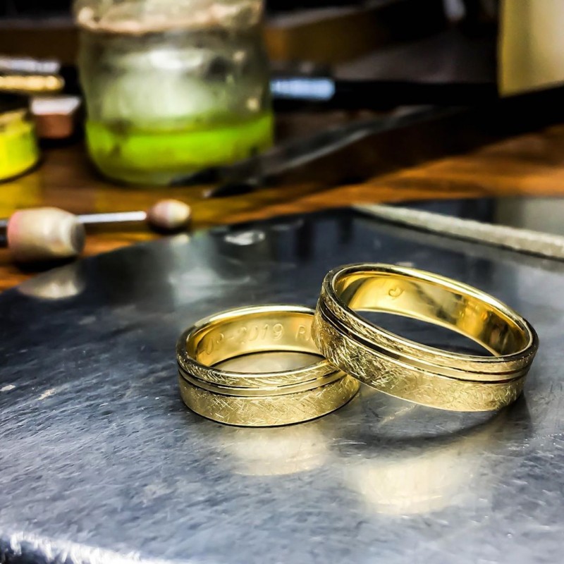 Alianzas personalizadas Bodas de Oro en oro amarillo de 18kt, entre la receta clásica y la fórmula modernuki.