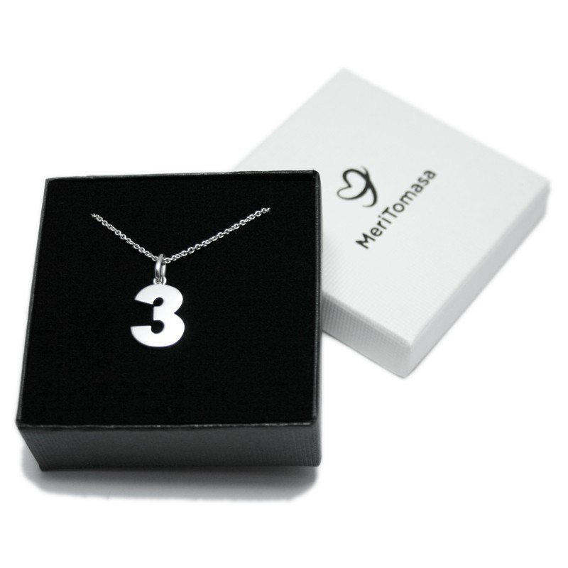 Colgante personalizado en plata de ley con la forma del número 3, a juego con unos pendientes personalizados también con la forma del número 3.