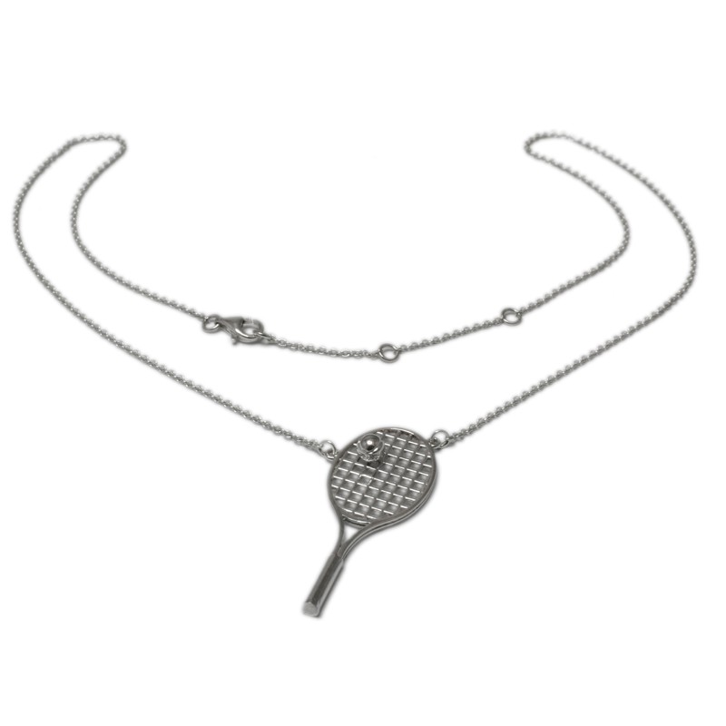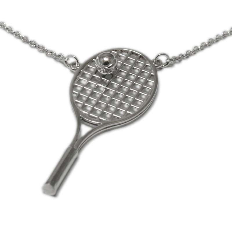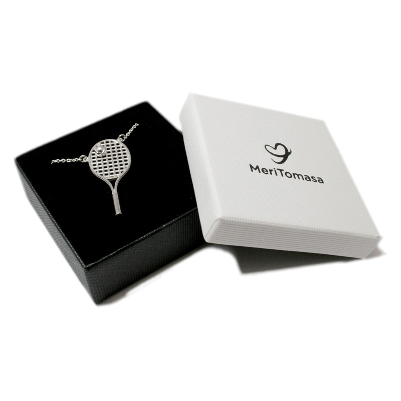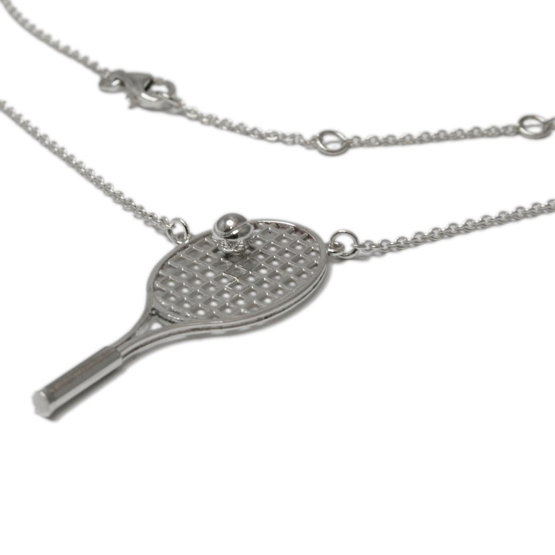 Collar con una raqueta de tenis, pelota incluida, para una amante de este deporte.