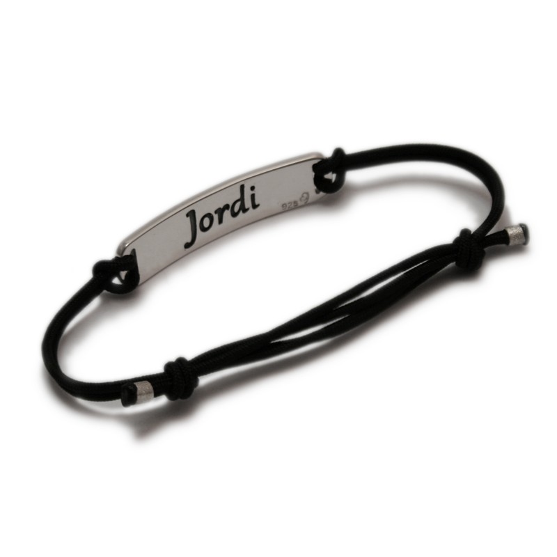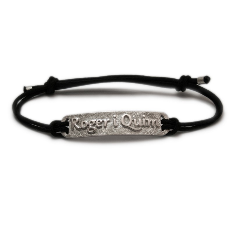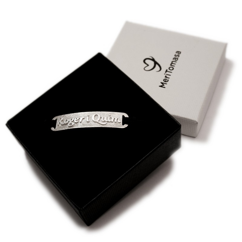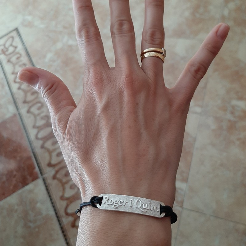 Pulsera con nombre personalizado en plata de ley, regalo para la mamá de Roger y Quim, con el nombre del padre, Jordi, en el interior.